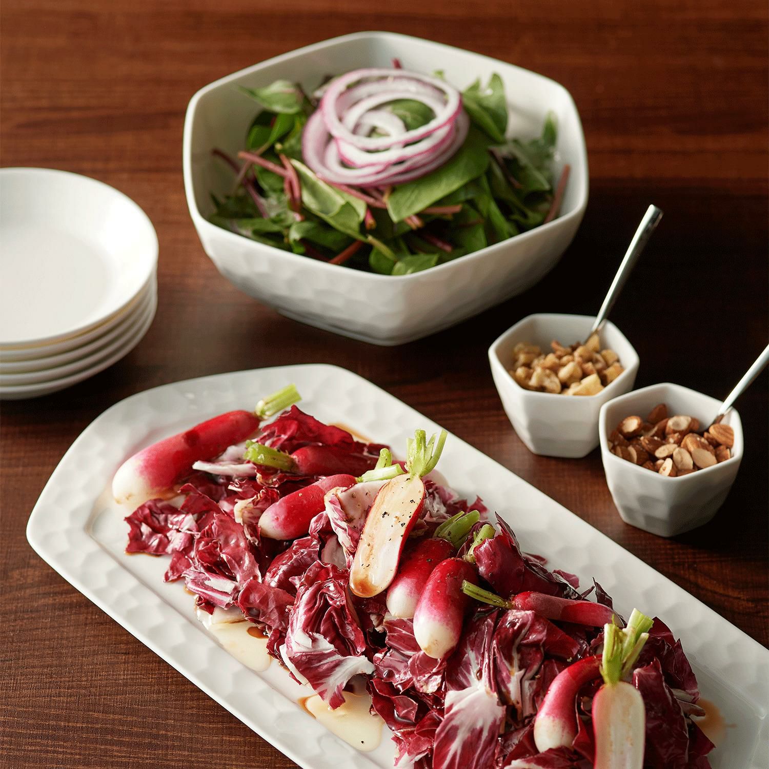 ブッフェスタイルでも使える盛り皿、収納性に配慮した取り皿やボウルも取り揃えております。