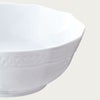 細かい部分まで丁寧にレリーフを施し、日本の洋食器メーカーならではの繊細さを表現しました。古来より日本で親しまれている立涌(たてわく)文様(※1)を現在風にアレンジしたレリーフは、純白で柔らかな表情を引き締めています。縁まわりのレリーフは、連続模様が永遠を表すと言われるギリシャ文様。オールドノリタケ(※2)にも多く用いられ、何世紀にもわたり受け継がれるモチーフに、親から子へ何代にもわたってお使いいただけますように、との思いを込めました。