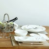 シェール ブラン(cher blanc)とは、直訳すると「親愛なる白へ」という意味のフランス語です。使うたびに愛着のわく大切なものであってほしいという願いと、なめらかで美しい純白の生地色から名づけました。普段の食卓で毎日使っていただけるよう、和洋中どんな料理にも合うシンプルなだけでなく優雅なフォルムが上質な華やかさを感じさせ、大切なお客様のおもてなしにもふさわしい品格を備えています。