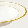 一つ一つ丁寧に手で盛られた半球盛りは、淡いベージュの地色や白盛技法を用いた唐草とあいまって、リッチでエレガントな雰囲気を醸し出しています。