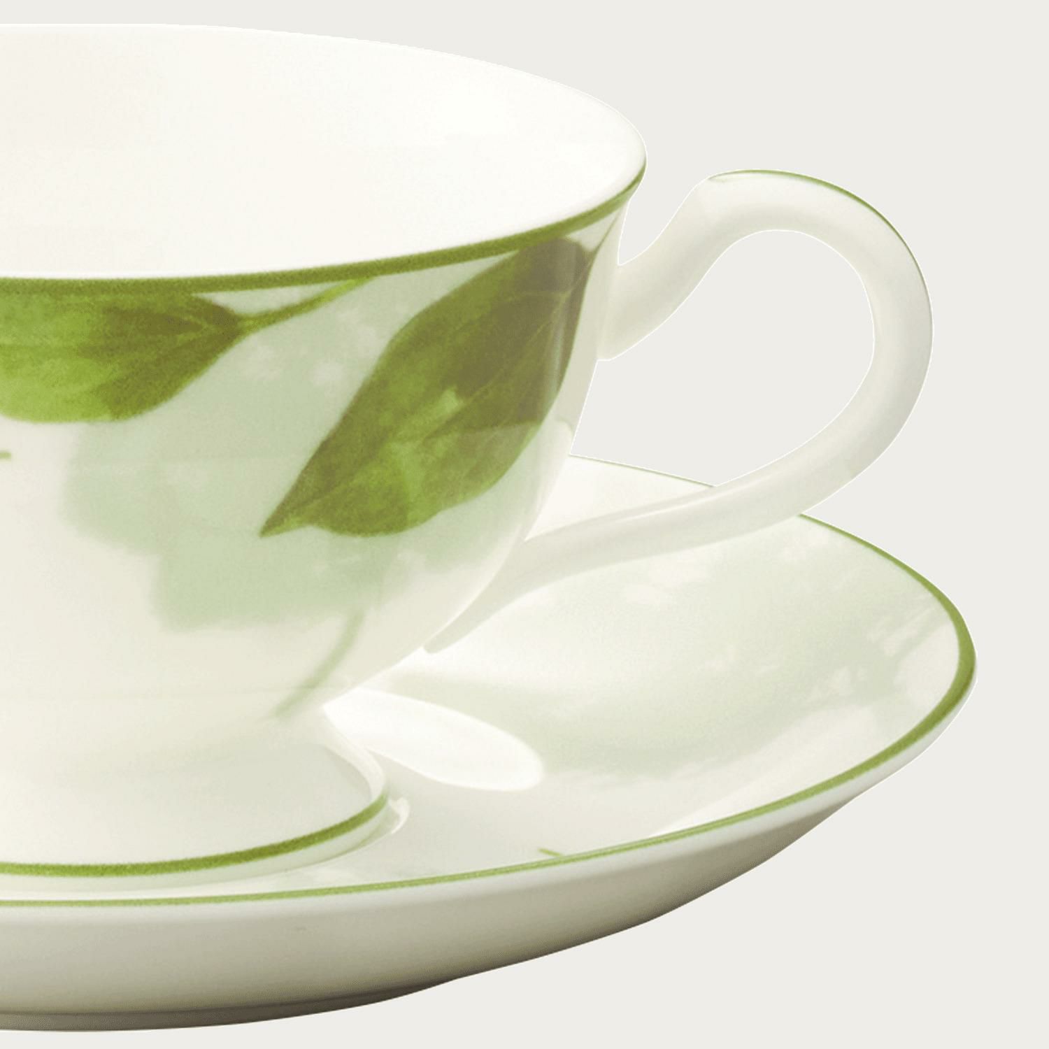 最初のデザインを手で描き起こし、繊細なグラデーションの表現を可能にした新しい技法で絵付けすることで、グリーンの優しいニュアンスが生まれました。