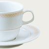 強化磁器でつくられた強くて美しいシェープのプリマ1型。繊細でエレガントなモチーフの縁取りがアクセントに。さりげなく華やかさを演出してくれます。
