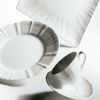 細かい部分まで丁寧にレリーフを施し、日本の洋食器メーカーならではの繊細さを表現しました。古来より日本で親しまれている立涌(たてわく)文様(※1)を現在風にアレンジしたレリーフは、純白で柔らかな表情を引き締めています。縁まわりのレリーフは、連続模様が永遠を表すと言われるギリシャ文様。オールドノリタケ(※2)にも多く用いられ、何世紀にもわたり受け継がれるモチーフに、親から子へ何代にもわたってお使いいただけますように、との思いを込めました。