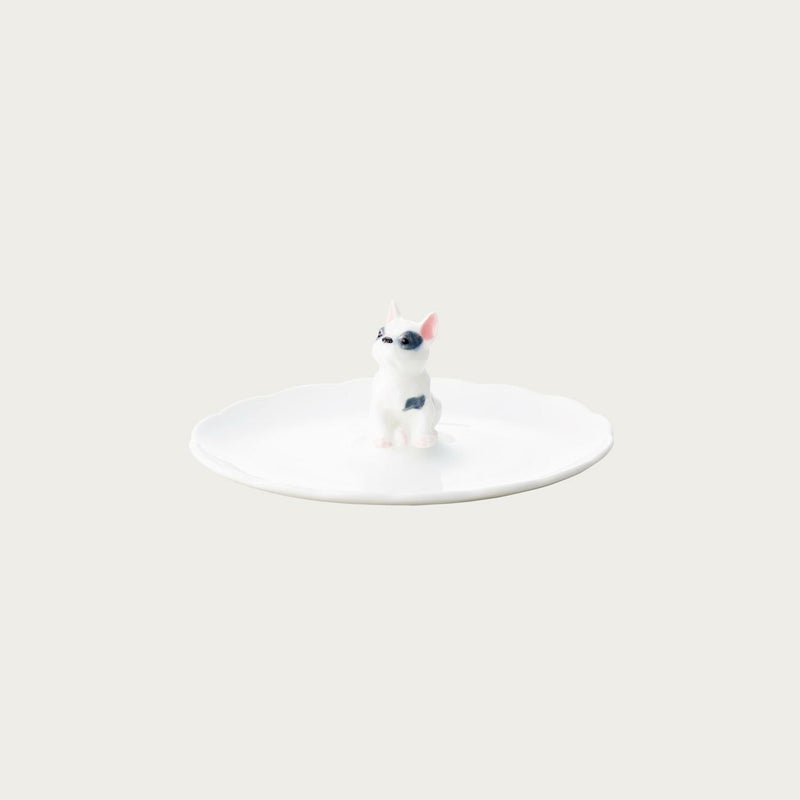 やわらかなカラーのかわいいフィギュリン付きトレイ。 日本製の色土を用いたハンドペイント商品で、動物の形状は、オールドノリタケのフィギュアをヒントにデザインしています。 ご自分用にはもちろん、ギフトにもおすすめです。 ※素描のため1点ずつ発色や風合い、表情が多少異なります。予めご了承ください。