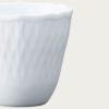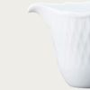 細かい部分まで丁寧にレリーフを施し、日本の洋食器メーカーならではの繊細さを表現しました。古来より日本で親しまれている立涌(たてわく)文様(※1)を現在風にアレンジしたレリーフは、純白で柔らかな表情を引き締めています。縁まわりのレリーフは、連続模様が永遠を表すと言われるギリシャ文様。オールドノリタケ(※2)にも多く用いられ、何世紀にもわたり受け継がれるモチーフに、親から子へ何代にもわたってお使いいただけますように、との思いを込めました。
