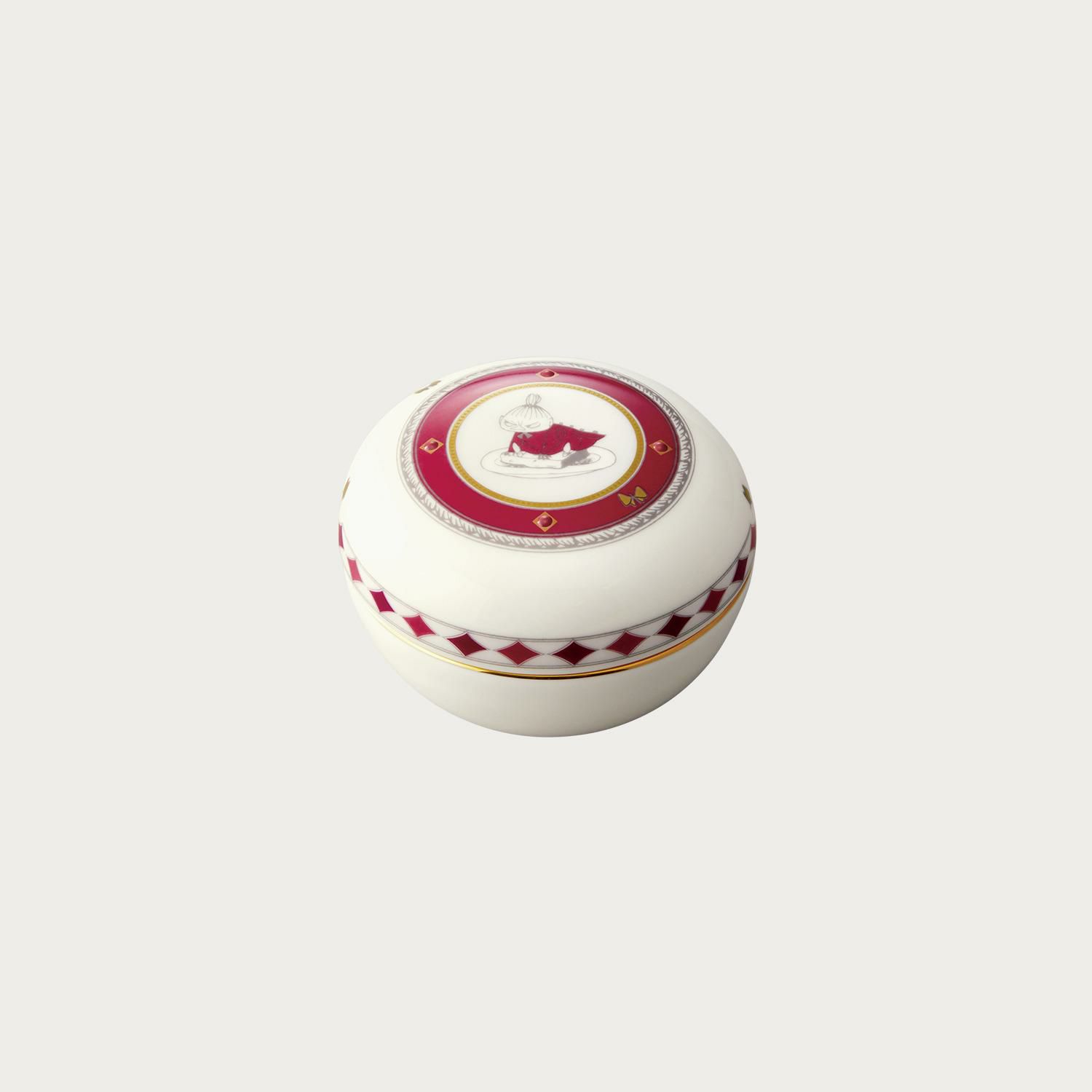 エレガントで繊細なノリタケの食器に「ムーミン谷の夏まつり」の挿絵がデザインされたテーブルウェア。縁取りにゴールドカラーが施された、高級感あふれる仕上がりです。 キャンディーや角砂糖、金平糖などにぴったりな小型のボックス。アクセサリーや鍵などを入れるのにもおすすめです。内側にもリトルミイが描かれたかわいらしいデザイン。コレクションアイテムにはもちろん、贈り物にも喜ばれるアイテムです。 © Moomin Characters TM