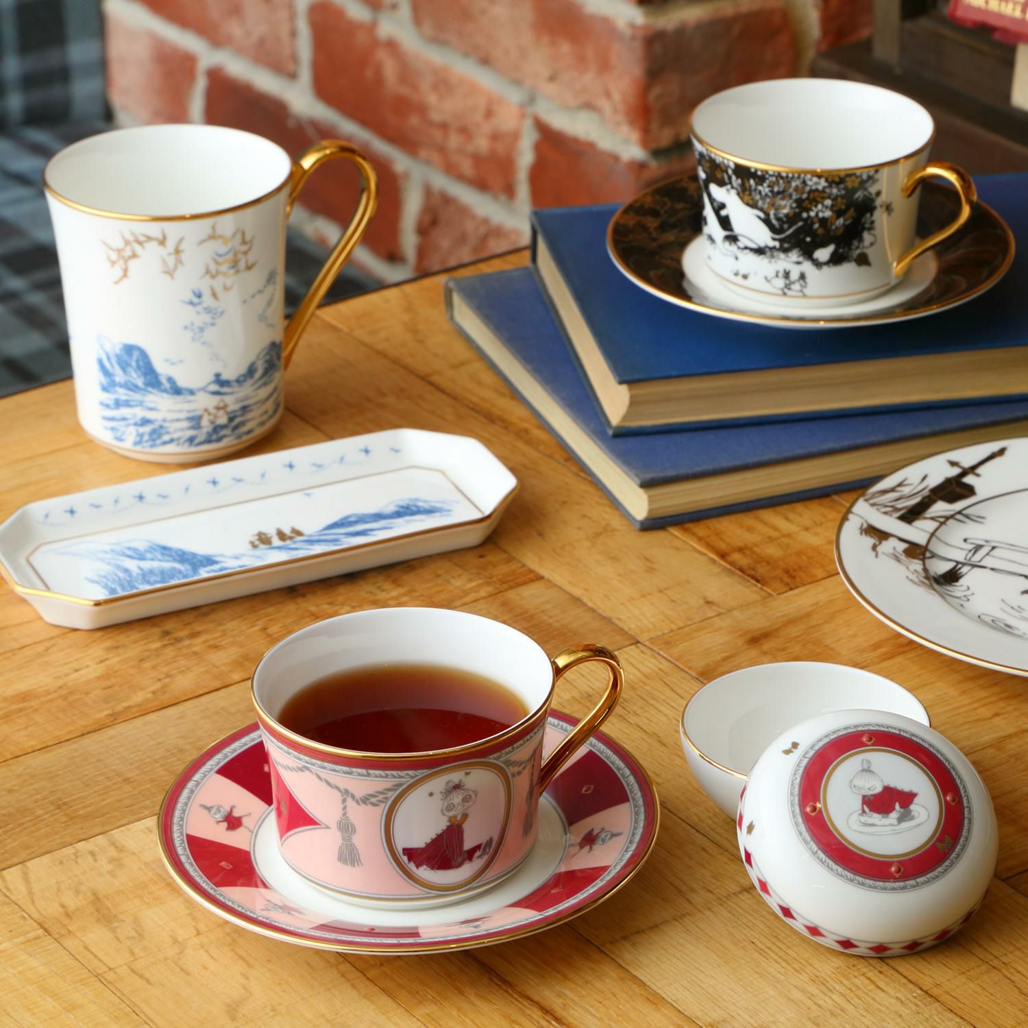 「ムーミン谷の夏まつり」をモチーフにしたテーブルウェアシリーズは、劇に挑むキャラクターたちに加えてリトルミイが可愛らしく描かれたデザイン。マグカップとキャンディボックスの内側にもリトルミイが隠れています。