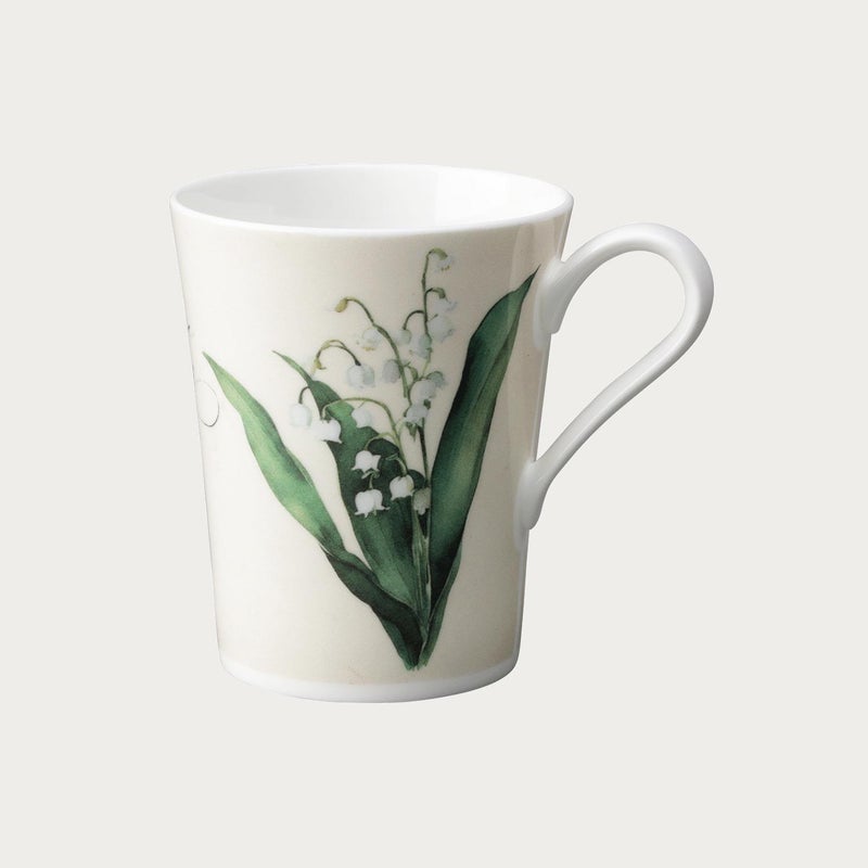 春の終わりから初夏にかけて、可憐な白い鈴のような花を咲かせるスズラン。 マグカップの片面に大きく描かれたスズランが印象的。背景には、ヴィンテージペーパーをイメージしたカラーをまとわせ、アンティーク調な雰囲気を演出しました。 カリグラファー・ギフトデザイナーの「ATELIER EMY」宮地 恵美さんとのコラボレーションにより、フランス語の心温まるメッセージを添えています。
