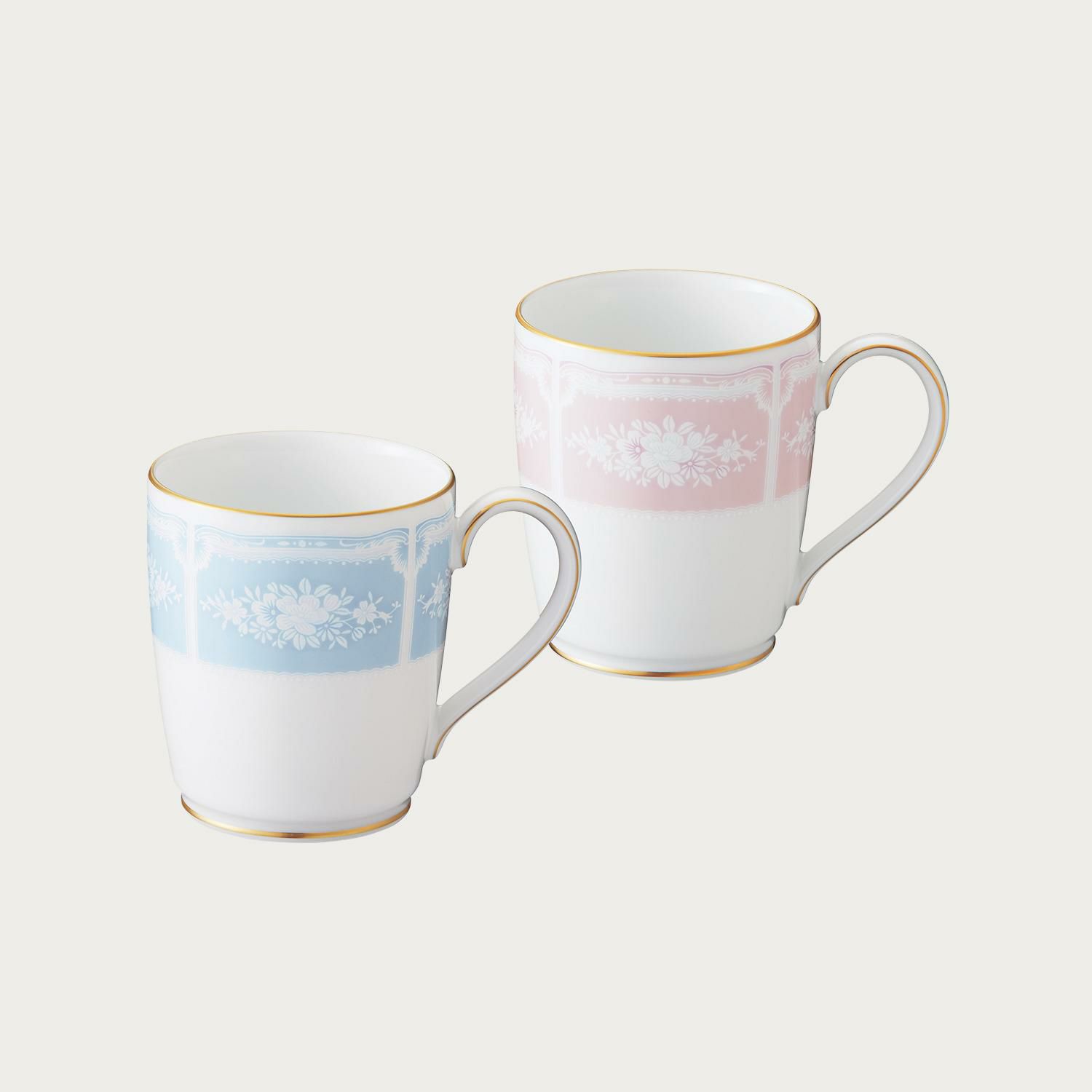 1988年の発売から20年が経過した2008年、長年愛されてきたレースウッドゴールドに色変りのピンクが追加されました。アイテムはティー・コーヒー碗皿、マグカップ、18cmプレート。差色としてブルーとのミックス&マッチをお楽しみください。
