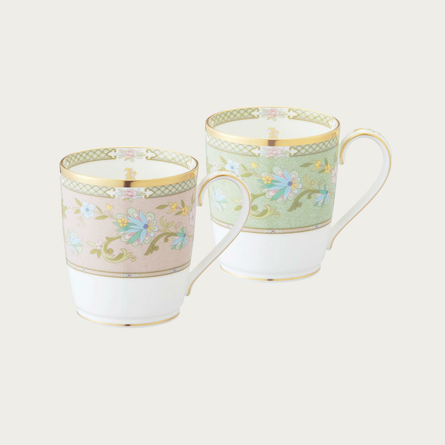 【受注後 約1か月でお届け】ヨシノ マグカップペア(グリーン・ピンク) イニシャル入り