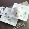 武蔵野の地に咲く四季折々の花をモチーフに、慈しむようなタッチで描きました。シンプル&モダンなリズモラインの器に咲いた5つの花が、食卓を優しく彩ります。