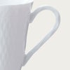 細かい部分まで丁寧にレリーフを施し、日本の洋食器メーカーならではの繊細さを表現しました。古来より日本で親しまれている立涌(たてわく)文様(※1)を現在風にアレンジしたレリーフは、純白で柔らかな表情を引き締めています。縁まわりのレリーフは、連続模様が永遠を表すと言われるギリシャ文様。オールドノリタケ(※2)にも多く用いられ、何世紀にもわたり受け継がれるモチーフに、親から子へ何代にもわたってお使いいただけますように、との思いを込めました。