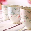 2014年、花更紗の発売25周年を機に、色変りアイテムが追加されました。従来の花更紗のモチーフにピンクとブルーの優しい色を加えたアイテムは、よりエレガントで優雅なティータイムを演出します。