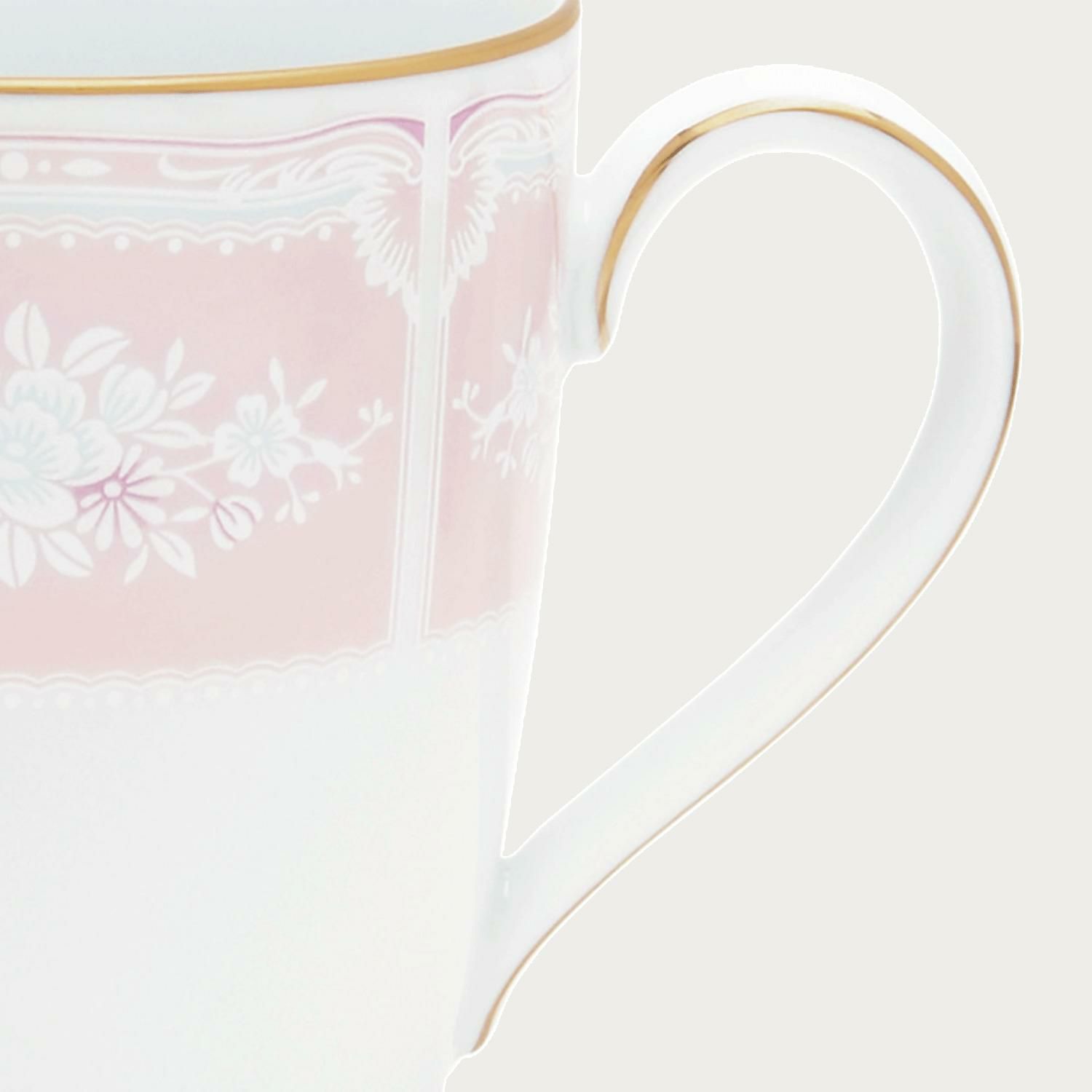 1988年の発売から20年が経過した2008年、長年愛されてきたレースウッドゴールドに色変りのピンクが追加されました。アイテムはティー・コーヒー碗皿、マグカップ、18cmプレート。差色としてブルーとのミックス&マッチをお楽しみください。