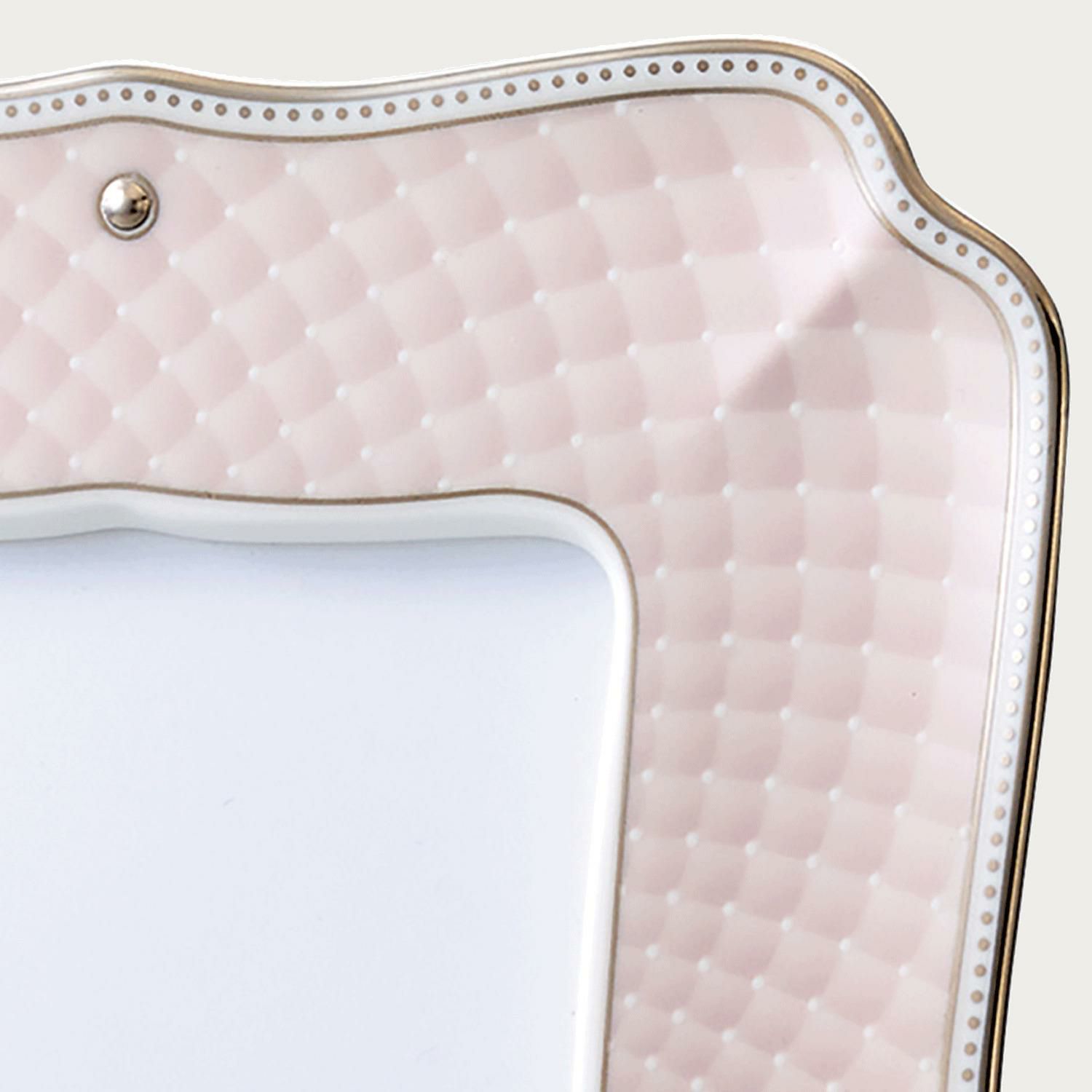 軽やかなカラーのキルティング(ピンク)のシリーズは、ノリタケらしいエレガンスを表現しました。現代のインテリアになじむ清潔感のあるシリーズ。 フェミニンなデザインはご友人へのギフトやブライダルとしてもおすすめいたします。縦向き、横向きにしてご使用いただけます。※L版サイズ(8.9cm×12.7cm)の写真を飾っていただけます。※L版サイズ(8.9cm×12.7cm)の写真を飾っていただけます。 こちらの商品は名入れのプレートをお付けすることが可能です。 [名入れオーダー]アルミプレート サイズ1<NAIRE/PLATE1> [名入れオーダー]アルミプレート サイズ2<NAIRE/PLATE2> [名入れオーダー]アルミプレート サイズ3<NAIRE/PLATE3> を組み合わせてお使いいただけます。