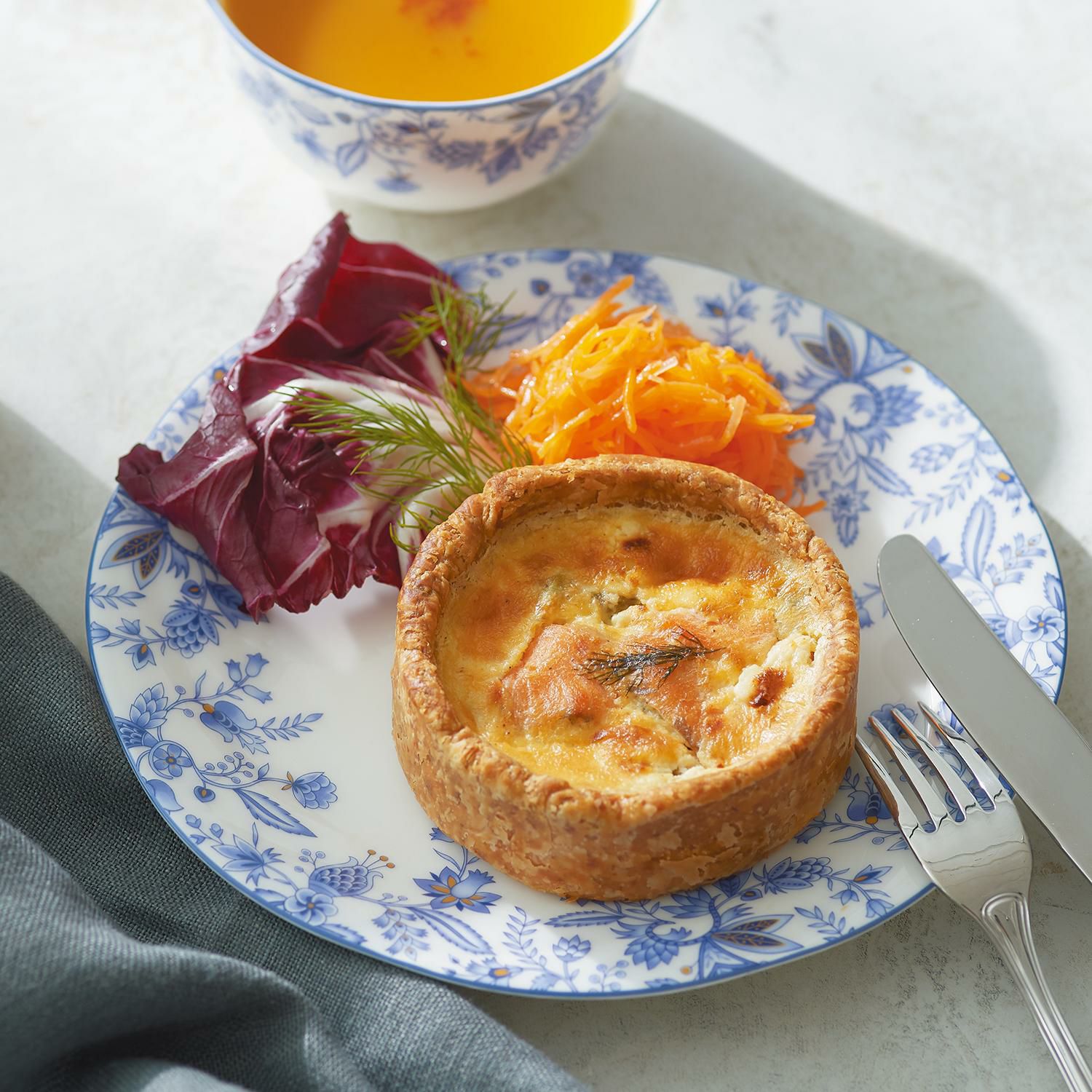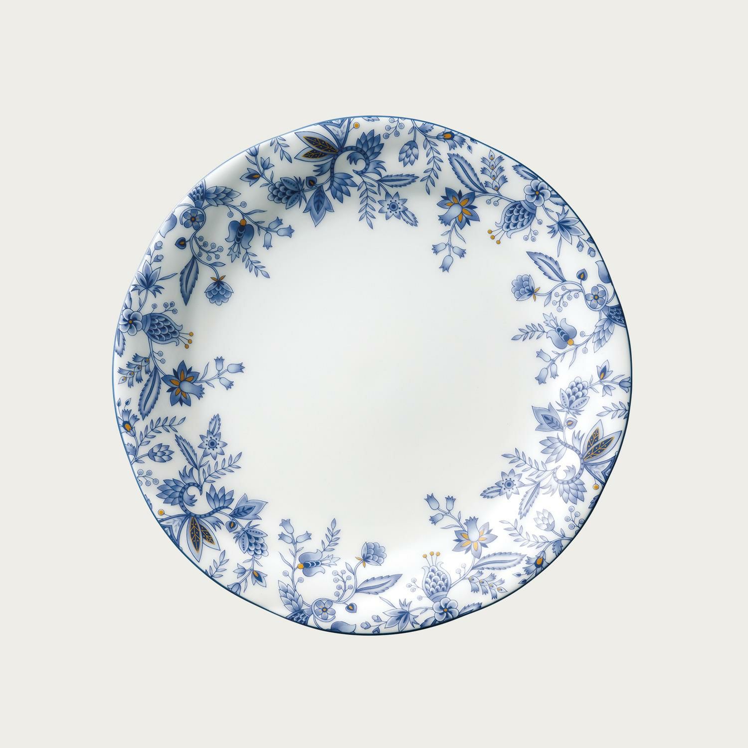 ブルーの濃淡とボーンチャイナのやわらかな色合いとのコンビネーションに、ゴールドのアクセントが美しいデザインは、毎日の食卓からおもてなしまで、シーンやお料理を選ばず幅広くお使いいただけます。