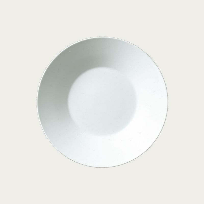 リムが広く、やや深さのある個性的なプレート。適度な深さがあるため、ソースや汁を活かした料理にも最適です。