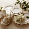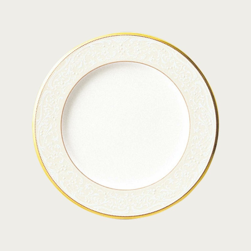 一つ一つ丁寧に手で盛られた半球盛りは、淡いベージュの地色や白盛技法を用いた唐草とあいまって、リッチでエレガントな雰囲気を醸し出しています。