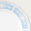 幸せな結婚生活を送るために古くからヨーロッパに伝わる4つのおまじない「Something Four」の中の「Something Blue」にちなんで、清潔感あふれるペールブルーをメインカラーとして使用しています。青は清らかさを象徴する幸せの色。青色を密かに身につけて幸せを願う花嫁の気持ちを反映したデザインです。花嫁のドレスを連想させるエレガントなレース模様を、ノリタケの誇る美しい「白盛技法」で表現しました。