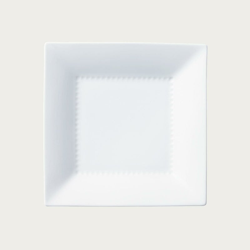 オードブルからメインディッシュ、デザートまで、どんなお料理を盛り付けてもきれいにきまるスクエアプレート。スクエアシェープに、伝統的な小紋をモチーフとしたレリーフが、モダンな中にも上質感を感じさせます。