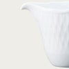 細かい部分まで丁寧にレリーフを施し、日本の洋食器メーカーならではの繊細さを表現しました。古来より日本で親しまれている立涌(たてわく)文様(※1)を現在風にアレンジしたレリーフは、純白で柔らかな表情を引き締めています。縁まわりのレリーフは、連続模様が永遠を表すと言われるギリシャ文様。オールドノリタケ(※2)にも多く用いられ、何世紀にもわたり受け継がれるモチーフに、親から子へ何代にもわたってお使いいただけますように、との思いを込めました。