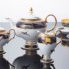 鶴、梅、桜、杜若、秋草、吹き寄せ、日本の美しい季節を表現。カップ&ソーサーやプレートなど、すべて6種類の絵柄がデザインされたアソートで構成されています。