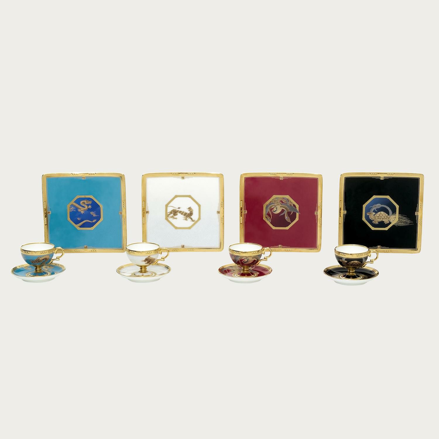 艶やかな"モダンシノワ"スタイル。白虎、青龍、朱雀、玄武、天の四方を司る神獣、四神を表した高貴なデザインです。 四神には、それぞれに司る方位、季節、象徴する色があり、日本でも奈良のキトラ古墳に描かれていることで注目されています。 皇帝気分に浸れる逸品です。