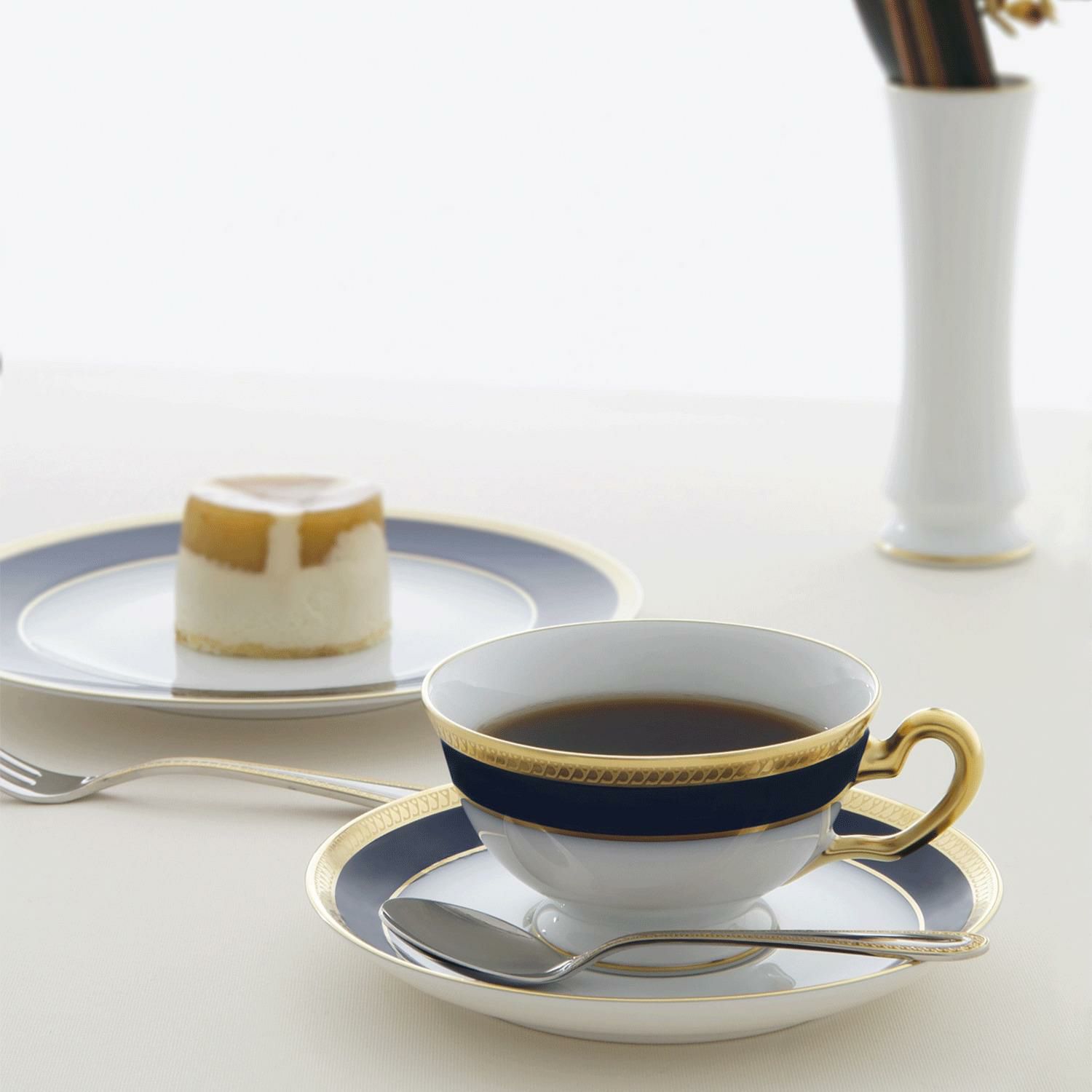 1925年頃に誕生した、大倉陶園の中で最も古くから愛され続けているデザインの一つです。 美しく浮かび上がる金蝕模様が、テーブルに華やかさを演出します。