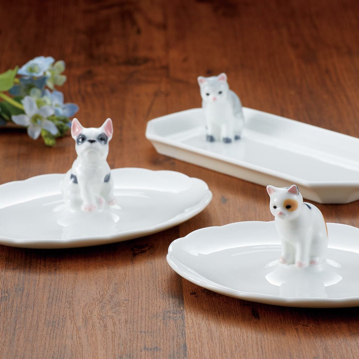 やわらかなカラーのかわいいフィギュリン付きトレイが登場しました。日本製の色土を用いたハンドペイント商品です。ご自分用にはもちろん、ギフトにもおすすめです。