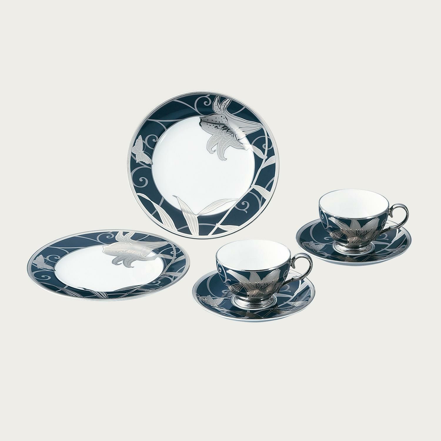 アールヌーボーのデザインを現代に蘇らせた気品溢れるシリーズ「花銀彩百合」。ノリタケクラフトマンの高度な技術によって描かれた大輪の百合が輝きます。