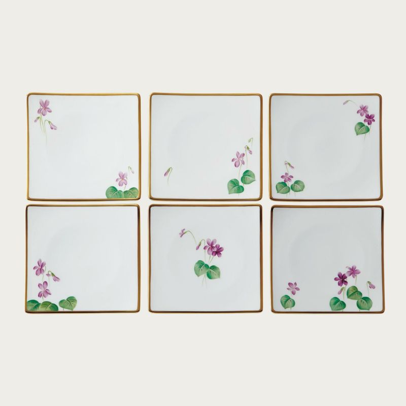 6. 【受注後3~5ヶ月でお届け】すみれ 15cm菓子皿揃(6枚)(絵変り)