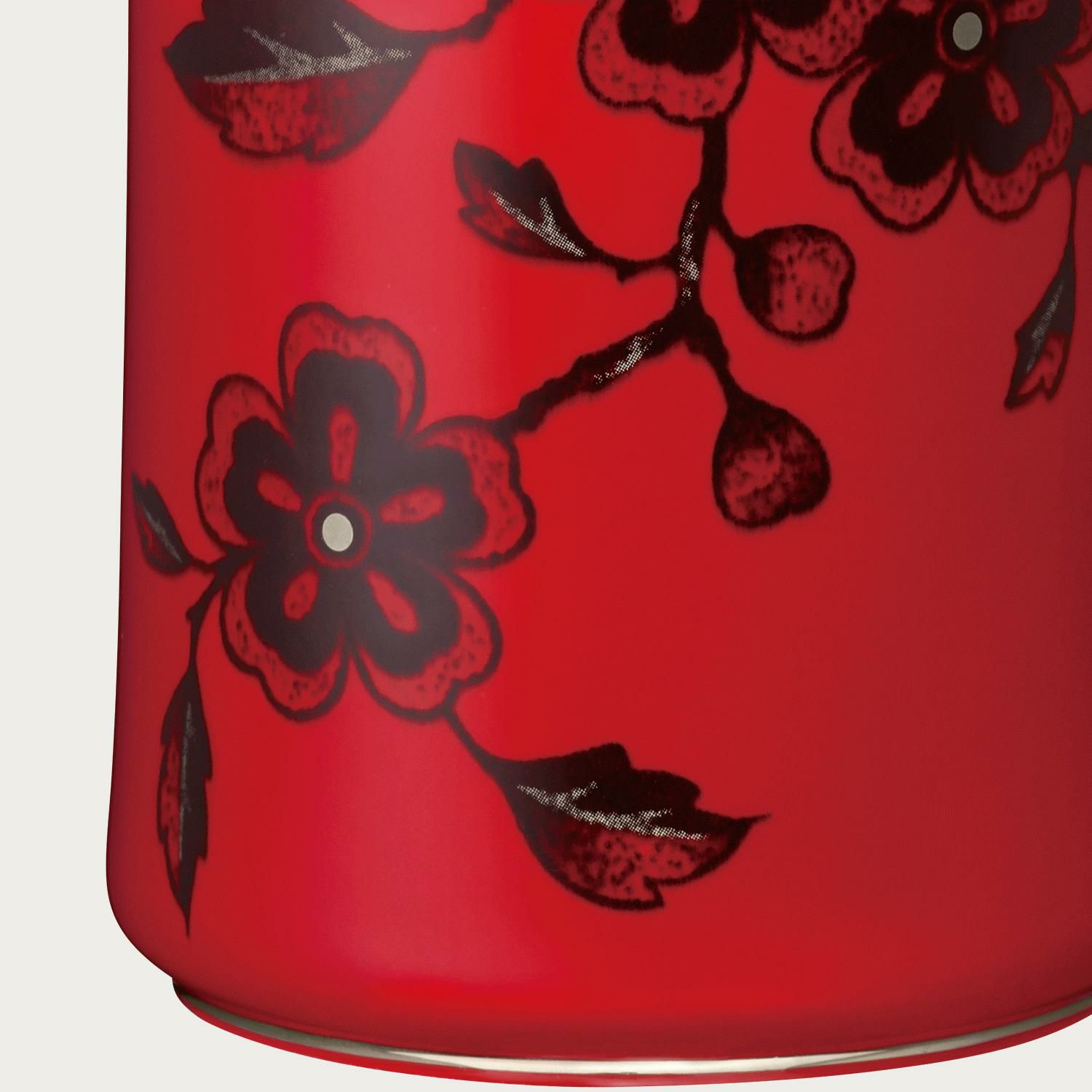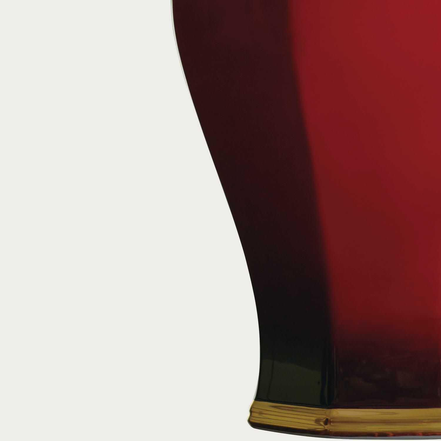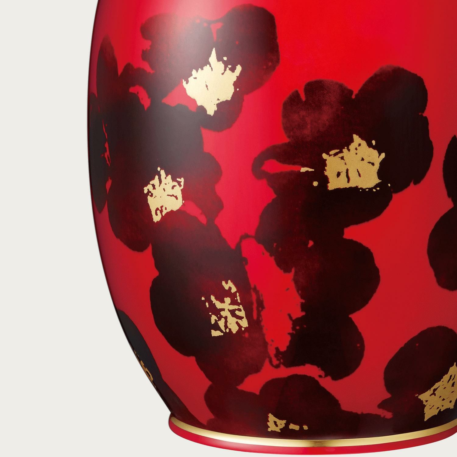 艶やかな深紅色が魅力の辰砂技法。生命の躍動を表すとともに、古来より災厄を防ぐ色として珍重されてきました。ノリタケの匠の技を駆使した格調高い花生が空間を美しく荘厳に演出します。