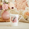 大ぶりの花と幾重にも重なる花びらが特徴的なピオニー(芍薬)。その華やかさから庭園や花束において人気のお花です。 ブーケをモチーフに、ピンクのグラデーションを丁寧に描きました。マグカップの白い生地にピンクが映え、まるで本当にお花を眺めているような気分。 カリグラファー・ギフトデザイナーの「ATELIER EMY」宮地 恵美さんとのコラボレーションにより、フランス語の心温まるメッセージを添えています。 【マグカップに込めたメッセージ】 Merci d'?tre l?. 側にいてくれてありがとう。