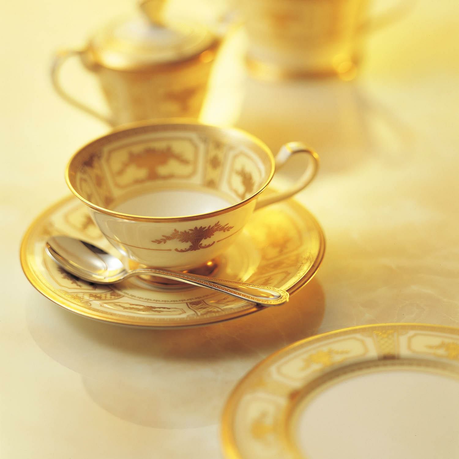 このシリーズについてナポレオン1世の時代の皇帝様式(アンピール様式)をベースとした格調高いデザインです。立体的に施された金彩が美しくインペリアルの名にふさわしい品格を備えています。