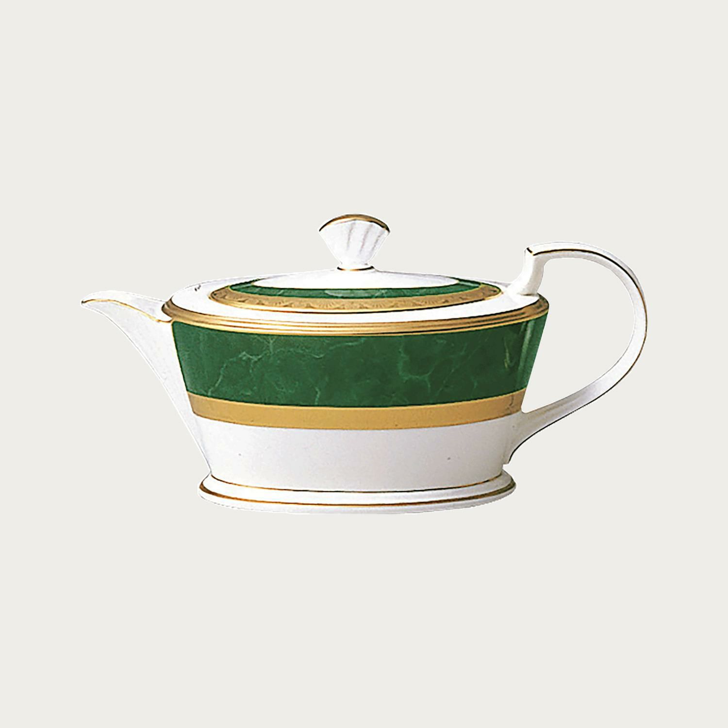 ゴールドのレリーフと大理石調のつやのある色とが重厚な風格を醸し出す、高級感に溢れたテーブルウェア。飽きの来ないデザインです。