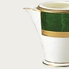 ゴールドのレリーフと大理石調のつやのある色とが重厚な風格を醸し出す、高級感に溢れたテーブルウェア。飽きの来ないデザインです。