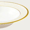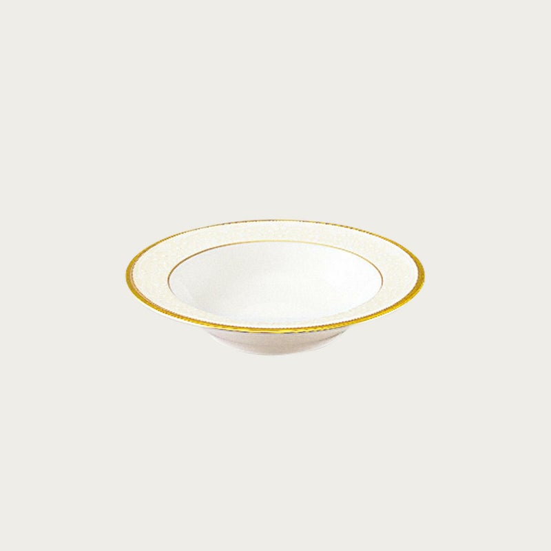 一つ一つ丁寧に手で盛られた半球盛りは、淡いベージュの地色や白盛技法を用いた唐草とあいまって、リッチでエレガントな雰囲気を醸し出しています。