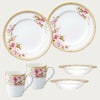 水彩タッチで優しく描いたピンクのバラが明るく華やか。繊細で優雅な金模様とエメラルドの半球盛が高級感を醸し出します。リラックスした雰囲気のティータイムを演出します。