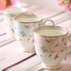 2014年、花更紗の発売25周年を機に、色変りアイテムが追加されました。従来の花更紗のモチーフにピンクとブルーの優しい色を加えたアイテムは、よりエレガントで優雅なティータイムを演出します。