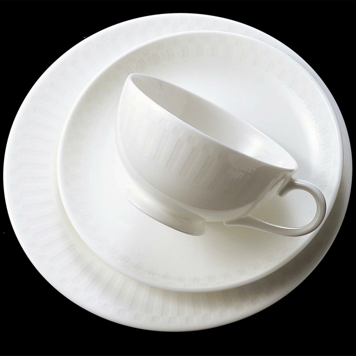 白くきらめくストライプ模様のテクスチャーが特徴的なシリーズ「ホワイトストライプ」。シンプルでスタイリッシュなデザインはテーブルを美しく演出します。