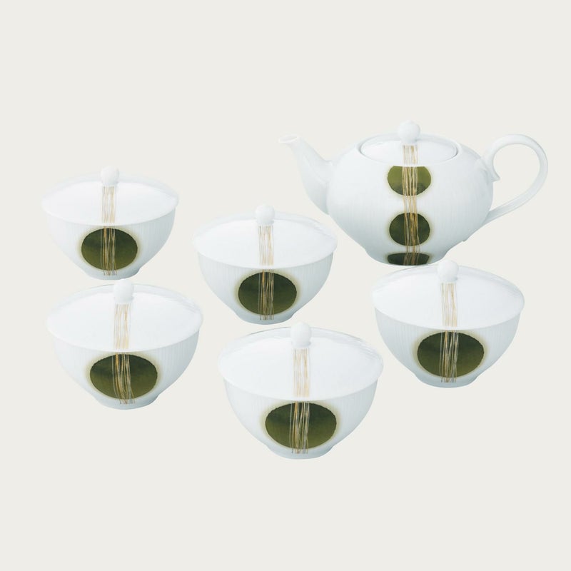 (汲出し湯呑5客、ティーポット1個)