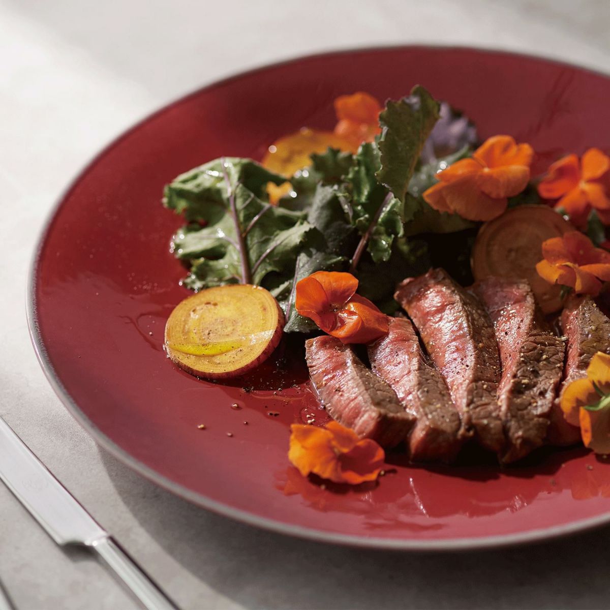 「オリッジ」は窯変の効果を活かしたスタイリッシュなシリーズ。自然界をイメージしたカラーリング、窯変ならではの風合いや質感の変化が印象的で、料理をドラマチックに引き立てます。