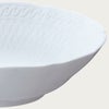 細かい部分まで丁寧にレリーフを施し、日本の洋食器メーカーならではの繊細さを表現しました。古来より日本で親しまれている立涌(たてわく)文様(※1)を現在風にアレンジしたレリーフは、純白で柔らかな表情を引き締めています。縁まわりのレリーフは、連続模様が永遠を表すと言われるギリシャ文様。オールドノリタケ(※2)にも多く用いられ、何世紀にもわたり受け継がれるモチーフに、親から子へ何代にもわたってお使いいただけますように、との思いを込めました。