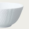 細かい部分まで丁寧にレリーフを施し、日本の洋食器メーカーならではの繊細さを表現しました。古来より日本で親しまれている立涌(たてわく)文様(※1)を現在風にアレンジしたレリーフは、純白で柔らかな表情を引き締めています。縁まわりのレリーフは、連続模様が永遠を表すと言われるギリシャ文様。オールドノリタケ(※2)にも多く用いられ、何世紀にもわたり受け継がれるモチーフに、親から子へ何代にもわたってお使いいただけますように、との思いを込めました。