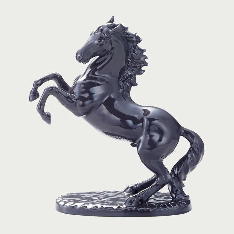 希望に向かって走り出す「跳ね馬」。 躍動感あふれる姿は、飛躍をイメージさせ、縁起の良いものとされています。 チャコールグレーの色により陰影が際立ち、骨格や鍛えられた筋肉を美しく浮かび上がらせます。