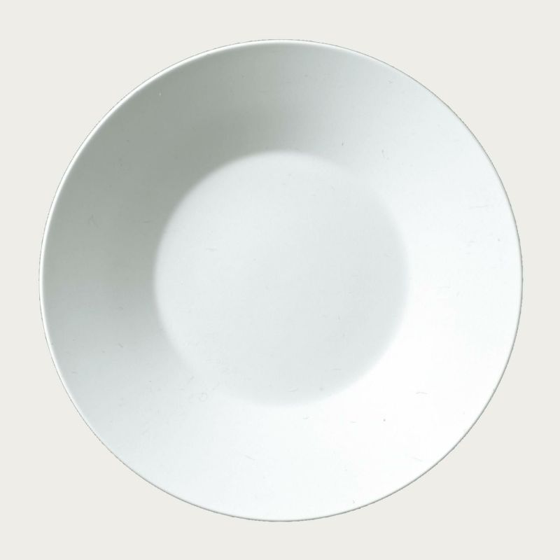 リムが広く、やや深さのある個性的なプレート。適度な深さがあるため、ソースや汁を活かした料理にも最適です。
