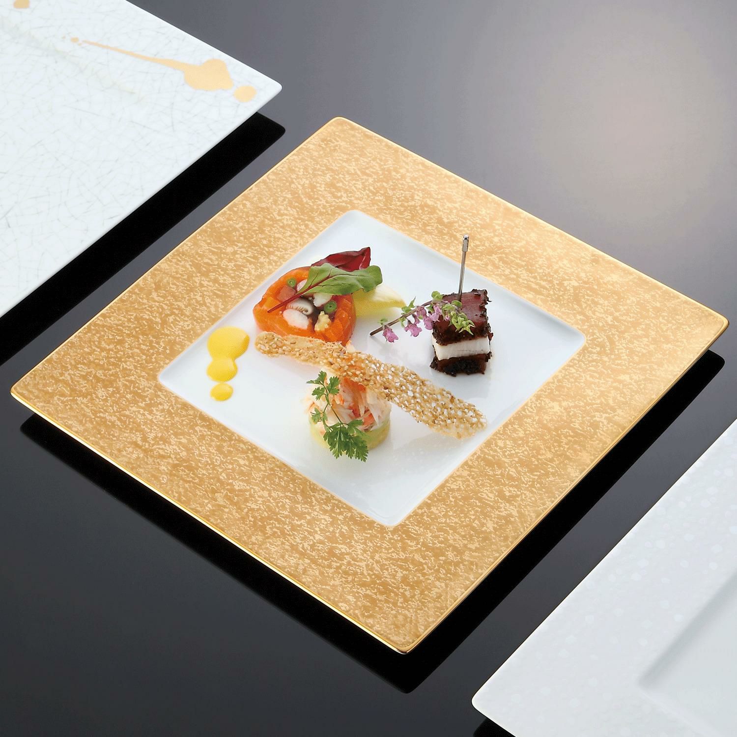 シェフの感性を十分に発揮して、思うままに演出いただけるノリタケのアラカルトプレート。ノリタケの得意とする装飾技法を駆使した、多彩なデザインを取り揃えています。