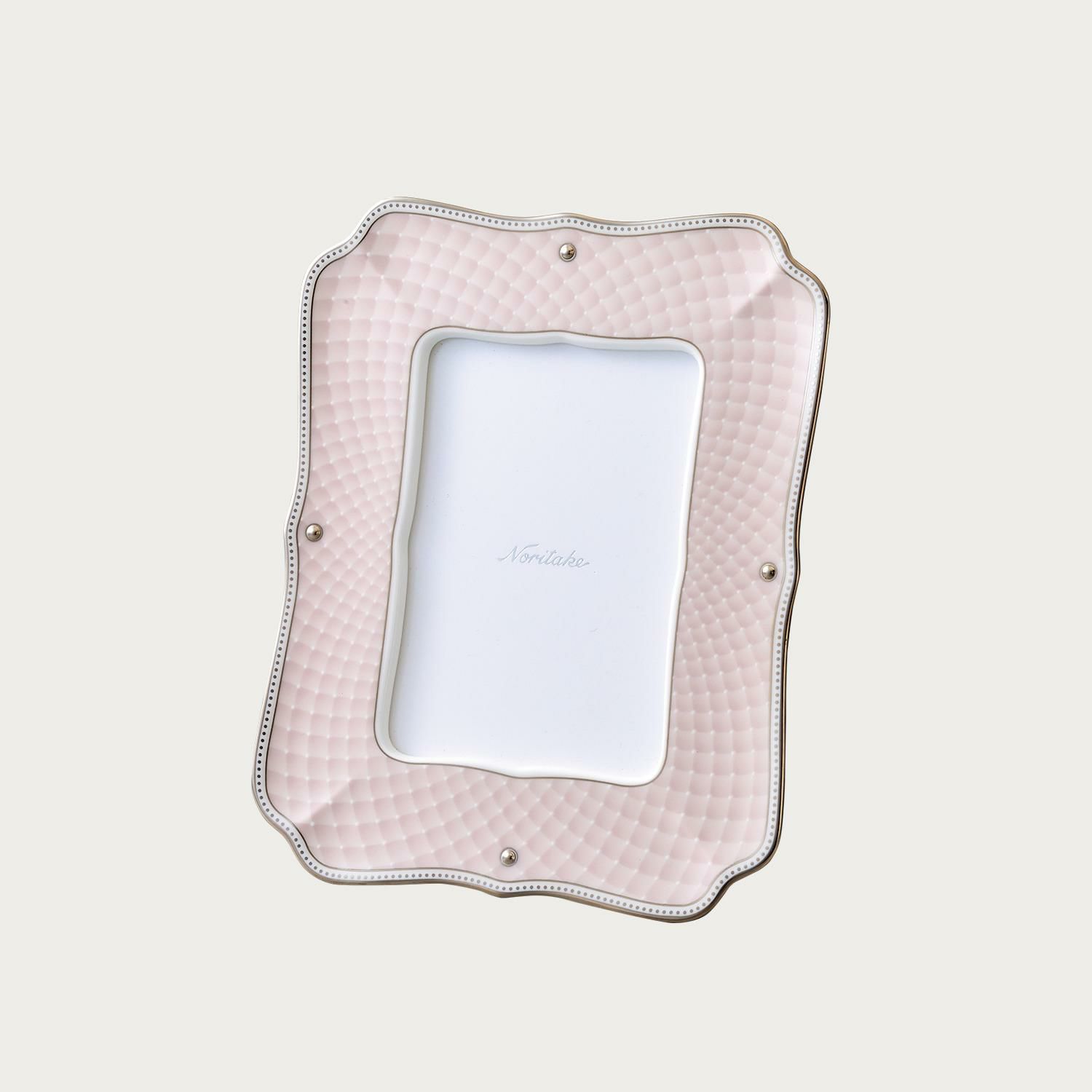 軽やかなカラーのキルティング(ピンク)のシリーズは、ノリタケらしいエレガンスを表現しました。現代のインテリアになじむ清潔感のあるシリーズ。 フェミニンなデザインはご友人へのギフトやブライダルとしてもおすすめいたします。縦向き、横向きにしてご使用いただけます。※L版サイズ(8.9cm×12.7cm)の写真を飾っていただけます。※L版サイズ(8.9cm×12.7cm)の写真を飾っていただけます。 こちらの商品は名入れのプレートをお付けすることが可能です。 [名入れオーダー]アルミプレート サイズ1<NAIRE/PLATE1> [名入れオーダー]アルミプレート サイズ2<NAIRE/PLATE2> [名入れオーダー]アルミプレート サイズ3<NAIRE/PLATE3> を組み合わせてお使いいただけます。