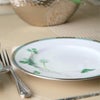 田の畔などに咲く清楚な“しろつめくさ”。葉や茎の柔らかく清々しいグリーンに、立体的な白盛や輝く銀彩と金彩が上品なアクセント。丁寧に素描された爽やかで心癒されるデザインです。