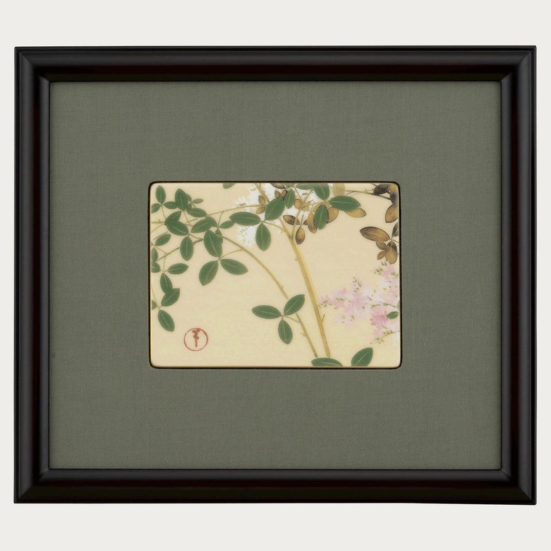 2019年の大倉陶園創業100周年を記念した、大倉陶園×細見美術館コラボ企画。細見美術館所蔵、神坂雪佳筆「十二ヶ月草花図画帖」より、「九月 萩」を磁器製陶板絵画にいたしました。